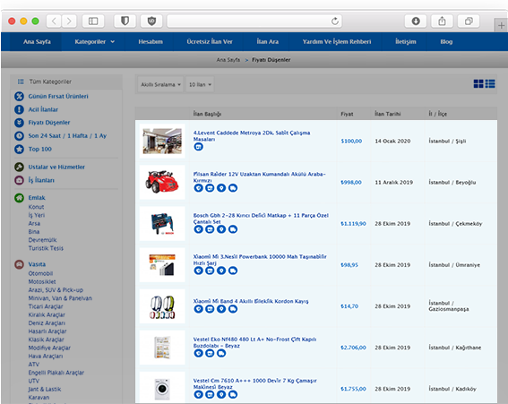 "İlan fiyatını düşürdüm, ilanım önde olsun" diyorsanız Fiyatı Düşenler alabilirsiniz.